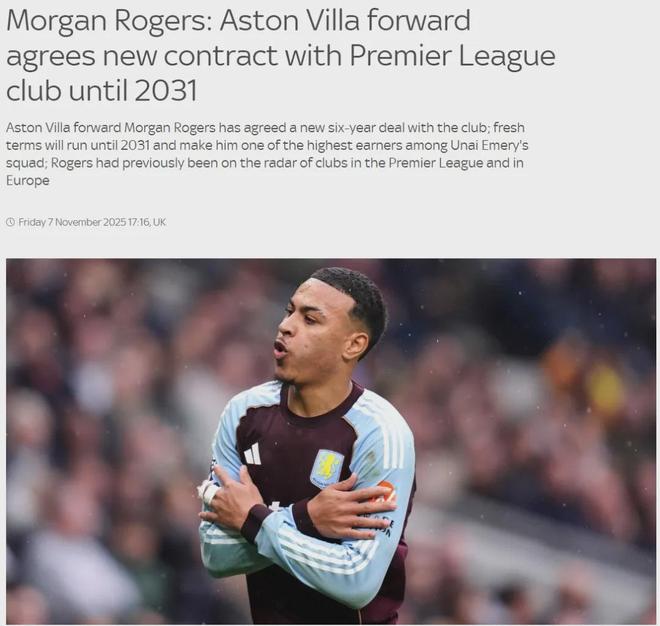 天空体育消息,维拉已经和摩根-罗杰斯就一份6年合同达成了协议,罗杰斯目前的合同2030年到期,新合同则是2031年到期。